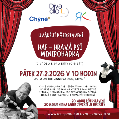 HAF – Hravá psí minipohádka, pátek 27.2.2026, Aula ZŠ Bolzanova, Chýně Read More »