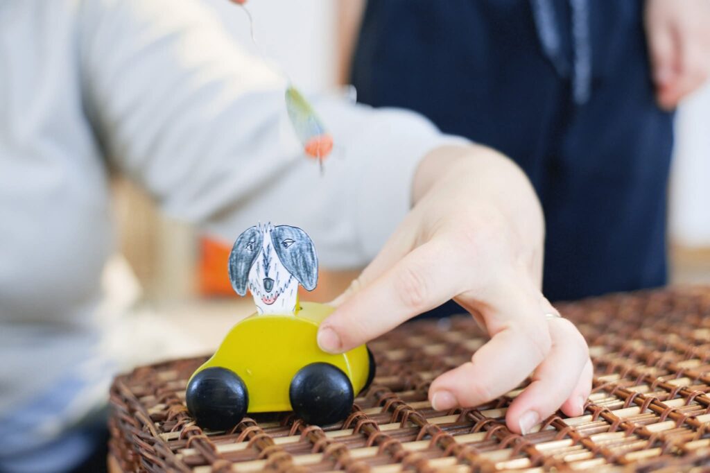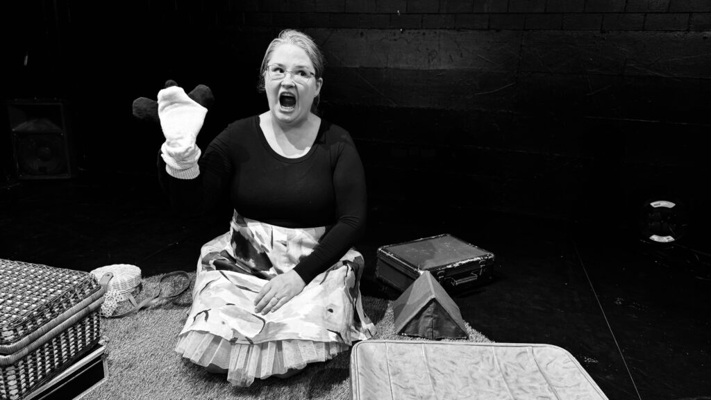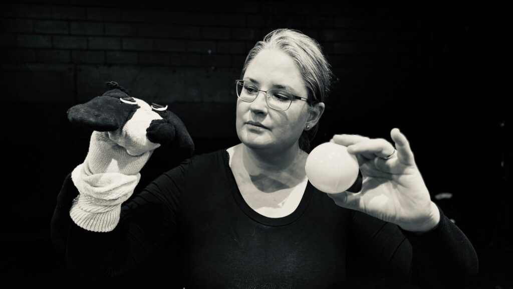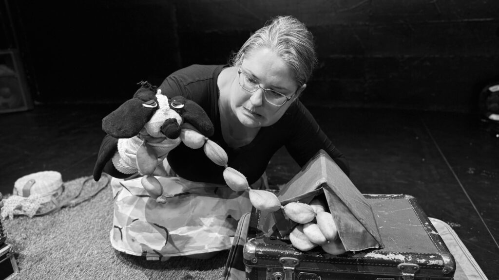 Během představení spolupracuje rodič a dítě v interakci s rozmanitými rekvizitami dotvářející celkový divadelní prožitek.